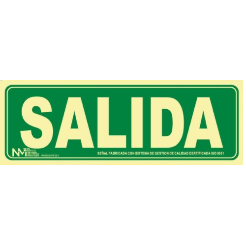 SEÑAL FOTOLUMINOSA 30X10 "SALIDA"