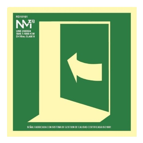 SEÑAL PUERTA EVACUACIÓN IZQUIERDA 21x21 CM