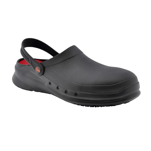 Zueco de seguridad fabricado en EVA, con punterade composite. Diseño anatómico, antibacteriano yultraligero. Ofrece máxima comodidad y protección encada uso, incluso en jornadas prolongadas.Proporciona seguridad en su puntera, soporteanatómico y gran sujeción gracias a su correaposterior abatible aumentando la comodidad yla seguridad. Suela antideslizante para mayorestabilidad en superficies resbaladizas.Descripción Zueco anatómico con puntera de composite fabricado en EVA (etileno-vinil-acetato) para serextremadamente ligero y resistente. Correa posterior abatible entre el talón y la pala. Incorpora unaplantilla interior textil sobre espuma de PU acolchada con tratamiento antibacteriano. Cuenta con unpatín de goma en la suela muy antideslizante de gran adherencia. Sin perforaciones laterales para evitarla entrada de líquidos o fluidos al interior. Admite limpieza en lavadora sin afectar sus características.Producto certificado de origen español.Certificado CE, norma EN-ISO-20345:2022 UE 2016/425ANTIbacterial ISO 16187. Antiviral ISO 21702:2019